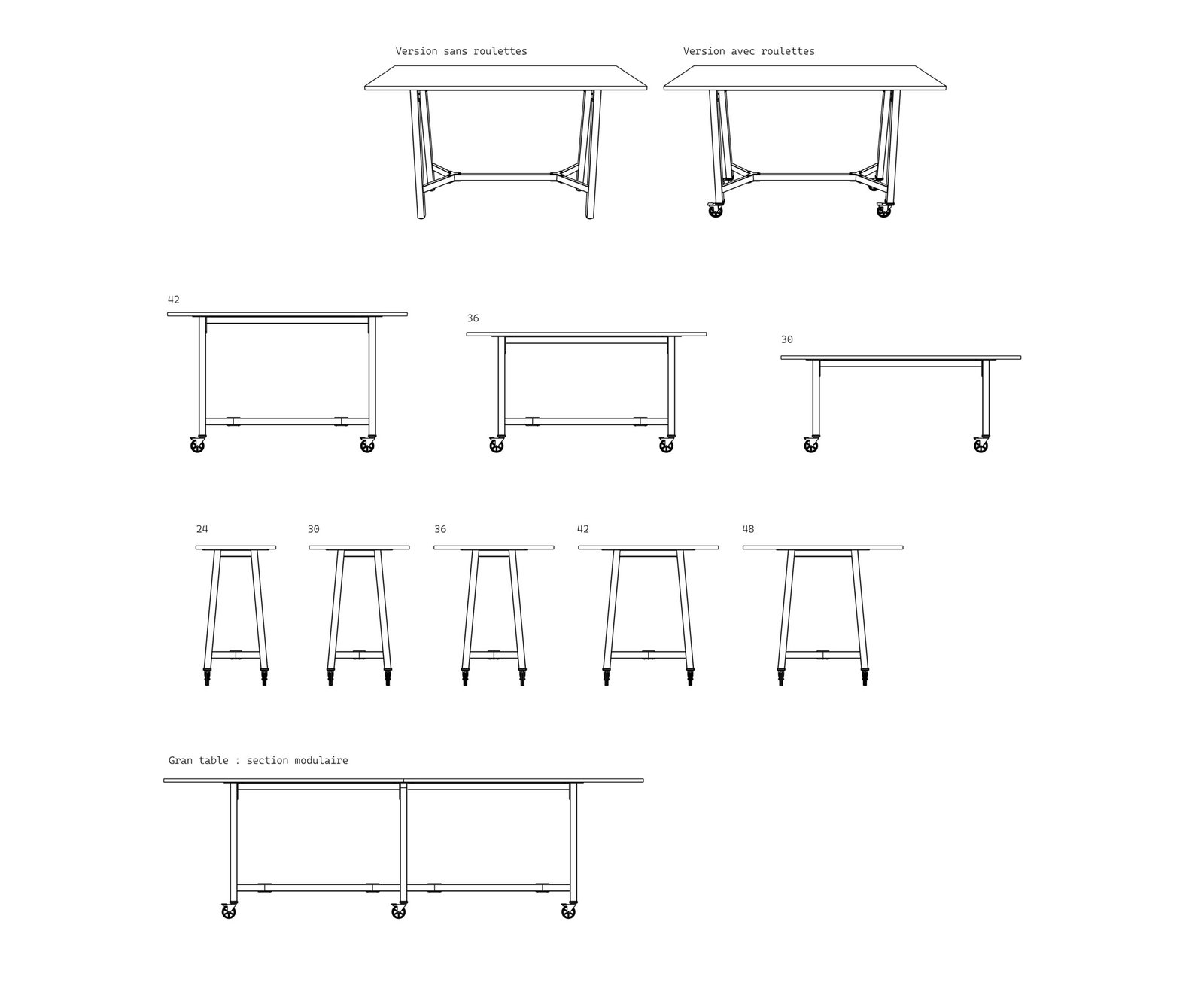 Après avoir réalisé plusieurs tests et analysé les différentes options en termes de dimensions, hauteurs et formats de tables, nous avons conçu un produit qui s’intègre parfaitement à notre gamme actuelle. Il contribue ainsi à compléter un ensemble de solutions répondant de manière plus précise aux besoins et aux comportements des utilisateurs identifiés lors de notre étude.